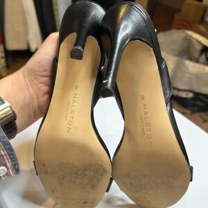 HALSTON HERITAGE BLACK LEATHER ANKLE STRAP STILETTO SANDALS W ANKLE STRAP SZ 8