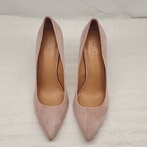 ⚫️HELLO⚫️ , THESE BEAUTIFUL 🐼HALSTON CLAUDIA HERITAGE🐼 ARE 🐼BEAUTIFUL🐼 STILLETOS ,IN GOOD PRE-OWNED CONDITION. THE COLORWAY IS BEIGE / PINK , THEY ARE POINTED-TOE. THE UPPERS ARE LEATHER SUEDE. THE🐼 HEEL IS 4.5🐼 INCHES HIGH. PLEASE ALWAYS REVIEW PICTURES FOR A SMOOTH SHOPPING EXPERIENCE 🛍. THEY ARE A 🐼WOMAN'S SIZE 8.5 ,🐼WITH NO HOLES ,OR TEARS , THE SUEDE IS 🐨PLUSH🐨 AND FUZZY IN GOOD SHAPE .