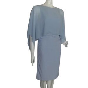 HALSTON HERITAGE Dress, 2, Light Blue, Sleeveless w/Scarf overlay, Ruched