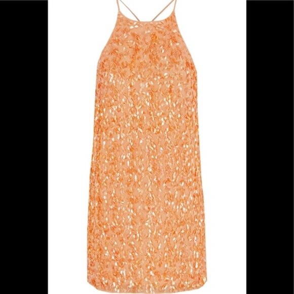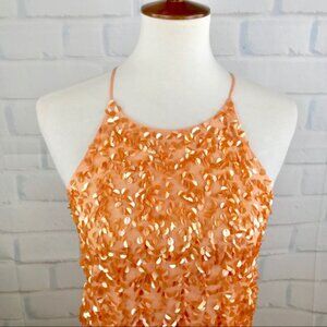 HALSTON HERITAGE Peach Orange Sequin Miini Dress, Size 0