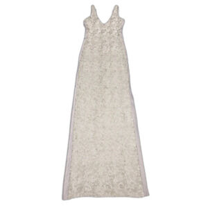 HALSTON HERITAGE Sequin Embellished Gown Maxi Dress Parchment HOCO Pageant Prom