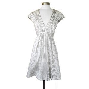 Halston Heritage Womens High/low V-Neck Fit & Flare Dress white gray Size12