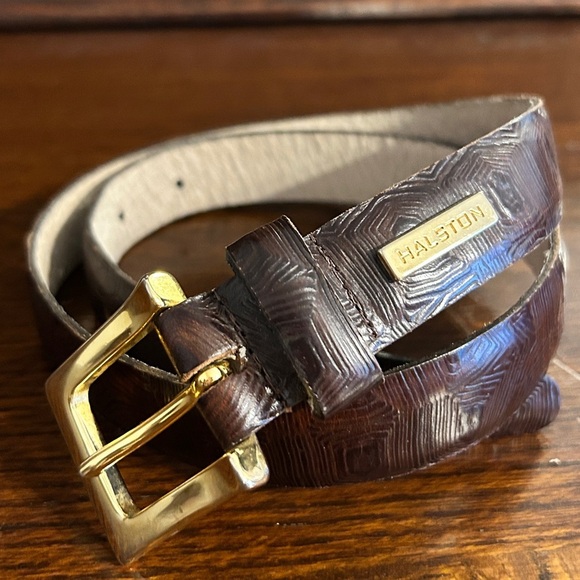 HALSTON Monogram Womens Designer Luxury textured leather Belt