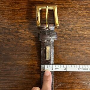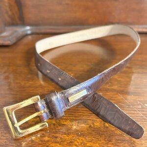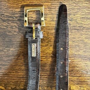 Vintage Textured Italian Calf Leather Lined belt Made in USA with solid brass buckle and engraved name plate. Fits up to 31" kindly see photos for details.