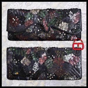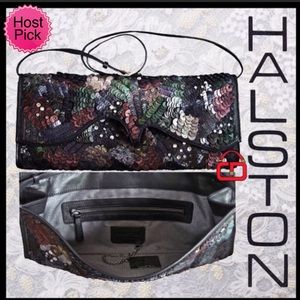 HALSTON Multi color Sequin Leather clutch w/Strap