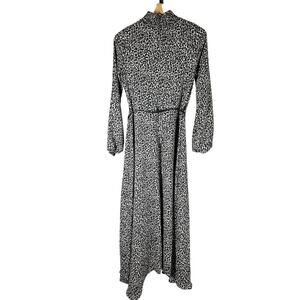 HALSTON Smock-Neck Long-Sleeve Belted Chiffon Dress Leopard Print Size 2