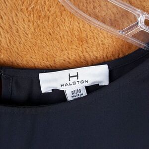 HALSTON Womens Top Medium Black Pullover Blouse Keyhole Back Lightweight Blouse