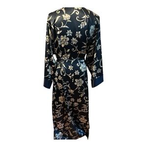 HALSTON vintage satin robe. Dark blue & light blue floral. Sewn in belt,Kimono