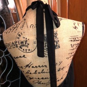 Gorgeous halter top style black dress, perfect evening gown for upcoming holiday parties. Sheer black with just the right about of sparkle sequence stretchy belt. Beautiful tie back halter top. Perfect under a sparkly cardigan with heels. Simple and elegant. Flattering size 16. EUC, worn once for an hour. Smoke and pet free home.