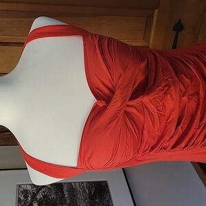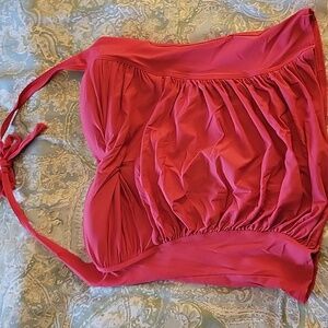 Vintage retro-sexy halter tie swim top with flattering rouched front that hides the tummy.