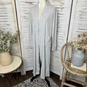 HAMMACHER SCHLEMMER Women's SIZE Med Longline Ribbed Cozy Cardigan Sweater Grey