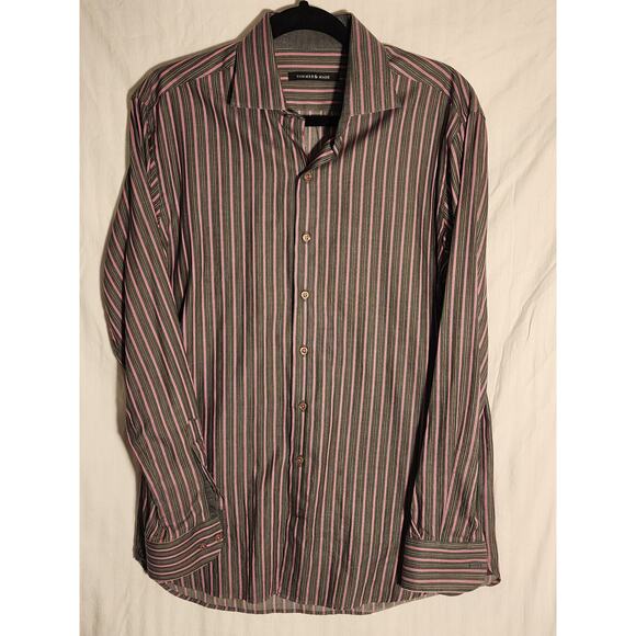 HAMMER MADE Men's Long Sleeve Pink & Gray Button Up Size 39/15.5