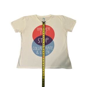 Details: HAMMER TIME STOP COLLABORATE AND LISTEN Circle T Shirt Size L