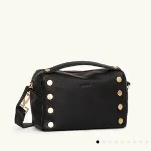 Specifically designed for customers who prefer a compact crossbody with a relaxed look, the Evan can be worn over the shoulder with a removable and adjustable crossbody strap. Or, carry it by its elevated top handle. This design pays homage to camera bags, with an East-West look. Featuring Hammitt's signature combo of black leather, brushed gold hardware and a statement red zipper.