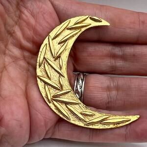 HANAE Mori Crescent Moon Brooch Pin Gold Tone Signed Costume Jewelry