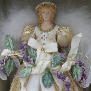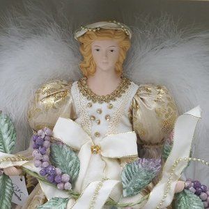 NEW HAS NEVER BEEN REMOVED FROM ORIGINAL BOX HAND CRAFTED "BRASS KEY" COLLECTION 16" PORCELAIN ANGEL TREETOPPER "CAMELLIA GARDEN" COLLECTIBLE LIMITED EDITION PRODUCED FROM APRIL TO MAY 1999 WITH CERTIFICATE OF AUTHENTICITY AND POSTCARD A REAL RARE STUNNING BEAUTY GET IT TODAY!