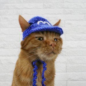 HAND CRAFTED Baseball Cat Hat Visor Crochet Hairy Wig Costume Photo Prop