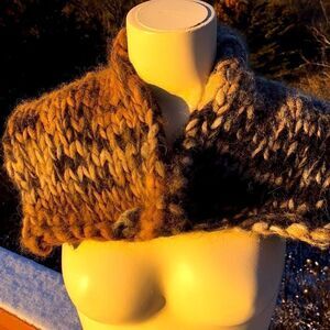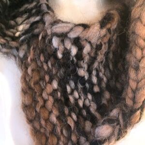 HAND CRAFTED Chunky Knit short soft wool roving yarn scarf browns creams black
