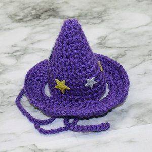 HAND CRAFTED Crochet Halloween Wizard Hat Moon Stars Costume Photo Prop