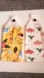 Towels are from Kohl’s Celebrate Together summer collection 100% cotton Colorful butterflies hummingbirds various birds and flowers The gold colored towel is terry cloth The white towel has yellow pinstripes White crocheted top with brown button closure Patterns on the towels may vary slightly from the pictures