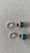 HAND CRAFTED DAINTY DROP EARRINGS Ocean Blue Cathedral Beads Red Rondelles
