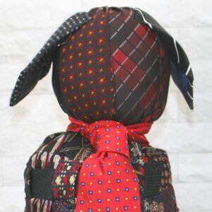 HAND CRAFTED Dog Necktie Upcycled Stuffed Decor Patchwork Canine Large Black