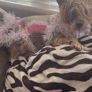 HAND CRAFTED Dog Sweater Coat Colorful Pink Chenille Cozy Crocheted XSmall
