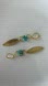 Handmade dangling earrings have gold plated leaves with metallic turquoise accents