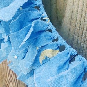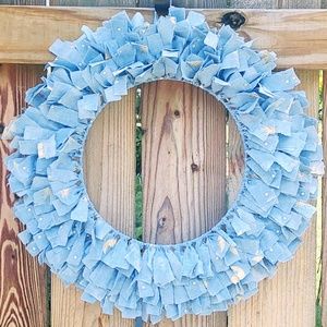 HAND CRAFTED FABRIC RAG WREATH BLUE MOON SUN & STARS SHABBY CHIC NURSERY DECOR
