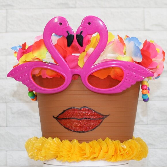 HAND CRAFTED Flamingo Pot Head Planter Upcycled Lady Face Luau Decor