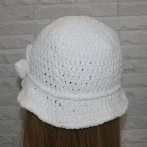 HAND CRAFTED Hat Crochet Bucket Chenille Floppy Wide Brim White Cloud Dancer