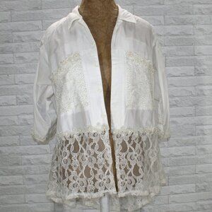 HAND CRAFTED Jacket Upcycled Peplum Lace Pearl Trim Floral White Bridal Large