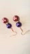 Handmade, oversized double pearl drop bon bon earrings are purple and rose gold on bright copper