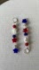 HAND CRAFTED PATRIOTIC EARRINGS Red White Blue Glass Stars Sparkling Disco Balls