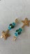 Shimmery cut glass crystals of turquoise blue and iridescent blue, decorate textured gold tone starfish charms, presenting ocean feels to your outfit. Euro summer, sardine fish jewelry.