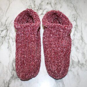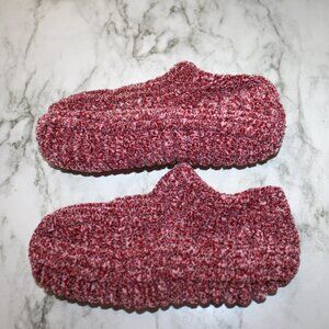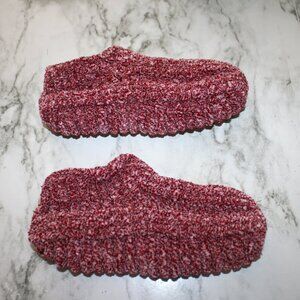 HAND CRAFTED Slippers Crochet Warm Thick Chunky Ribbed Warm Winter Red Marled