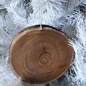 Christmas ornament hand crafted from natural wood, chalk paint and permanent vinyl.
