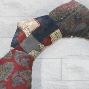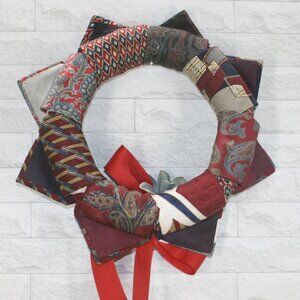 HAND CRAFTED Wreath Upcycled Necktie Christmas Holiday Red Floral Decor