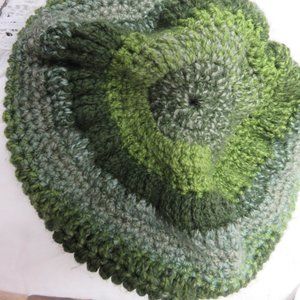 HAND CROCHET HAT OF VARIEGATED GREEN COLORS/UNISEX