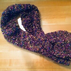 HAND KNIT SCARF Italian Wool, one of a kind, purple multi color