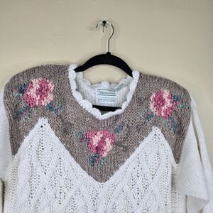 HAND KNIT pullover 1980s cable knit sweater size S with shoulder pads approx ptp 19 inches