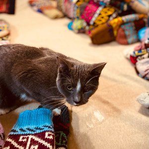These socks are hand knitted. Pair of the socks is fitted inside each other. They’re cute and perfect for those with cold feet!