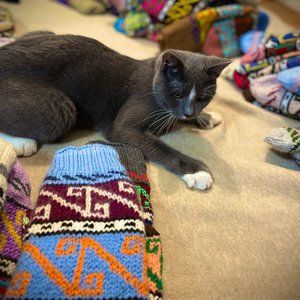 These socks are hand knitted. Pair of the socks is fitted inside each other. They’re cute and perfect for those with cold feet!