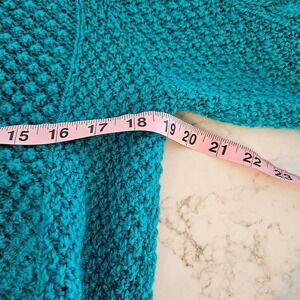 pit 2 pit 19, length 24, both pictured, made in New Zealand, pure new wool, very nice, no stains or piling, teal green