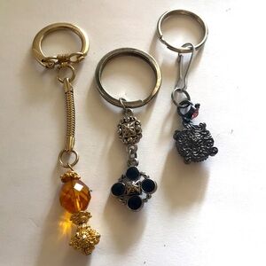 HAND MADE BLING FOR YOUR BAG ZIPPER OR KEYCHAIN SET OF 3 2 SILVERTONE 1GOLDTONE