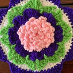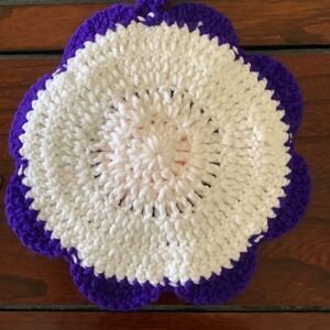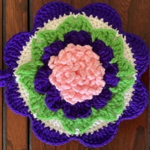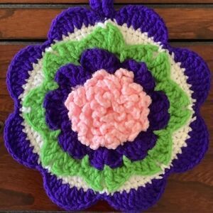 HAND MADE CROCHET POT HOLDER FLORAL DESIGN