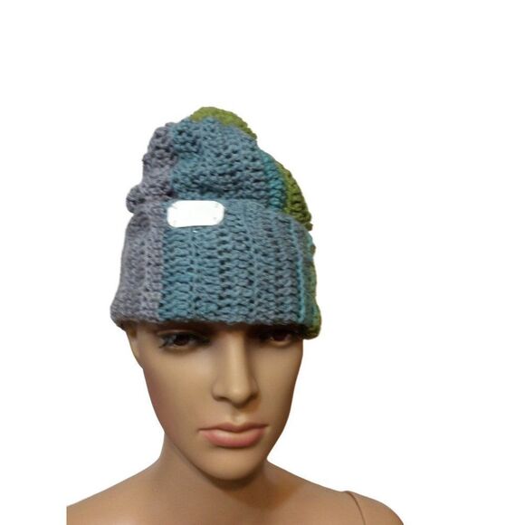 HAND Made Pom Pom On Top One size fits Most (Adult) Gray Green Blue Acrylic Yar