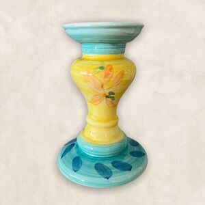 HAND PAINTED Candlestick Shabby Chic Floral Yellow Blue Floral Decorative