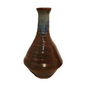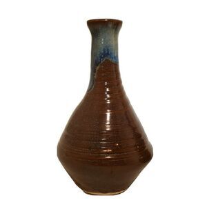 HAND Turned Stamped Small Blue Drip Glaze Ocean Brown Stoneware Pottery Bud Vase