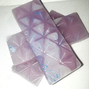 Our scented Candy-Land wax melts are used in an electric wax warmer and release a soothing gorgeous sweet fragrant scent into the air immediately upon melting. They are ideal for spreading a relaxing scent and welcoming aroma throughout your home. Hand Made with all natural organic ingredients. Our glitter waxmelt bars has a light yet intoxicating aromas. Waxmelts are an incredible alternative to traditional candles. They are safer as they do not require direct flames to be used and in some instances last longer. Please understand that because each and every wax tart is hand crafted, no two items will ever be alike. That being said, please allow for some variation , though we do our best to minimize dissimilarities in our products. We appreciate your understanding!
